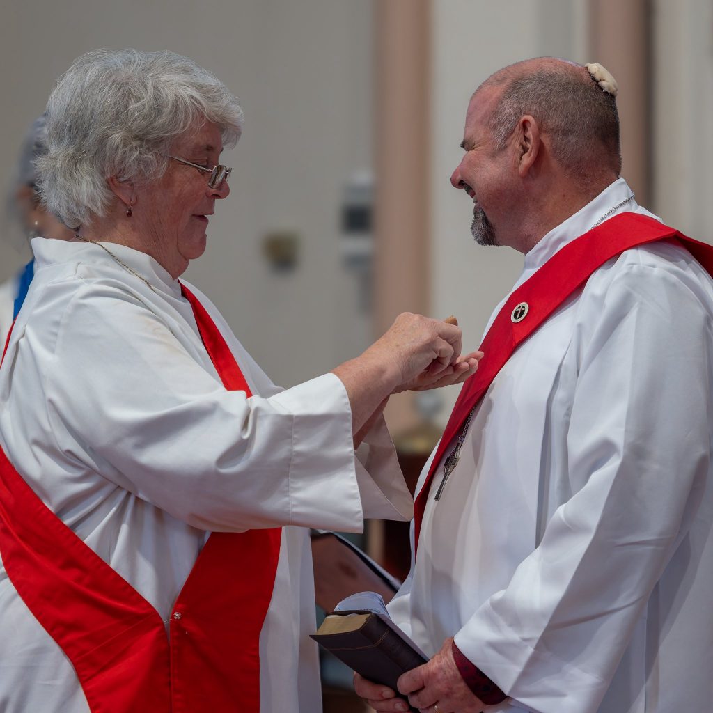 (Rev Deacon Jeanne Beale presents the Deacon badge)